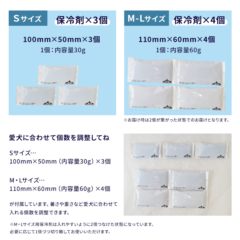 ※M・Lサイズ用保冷剤は入れやすいように2個つなげた状態になっています。