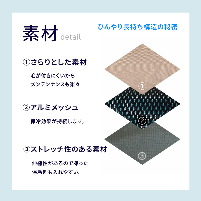 柔らかく軽い素材なのに保冷効果もある機能素材を採用しました。