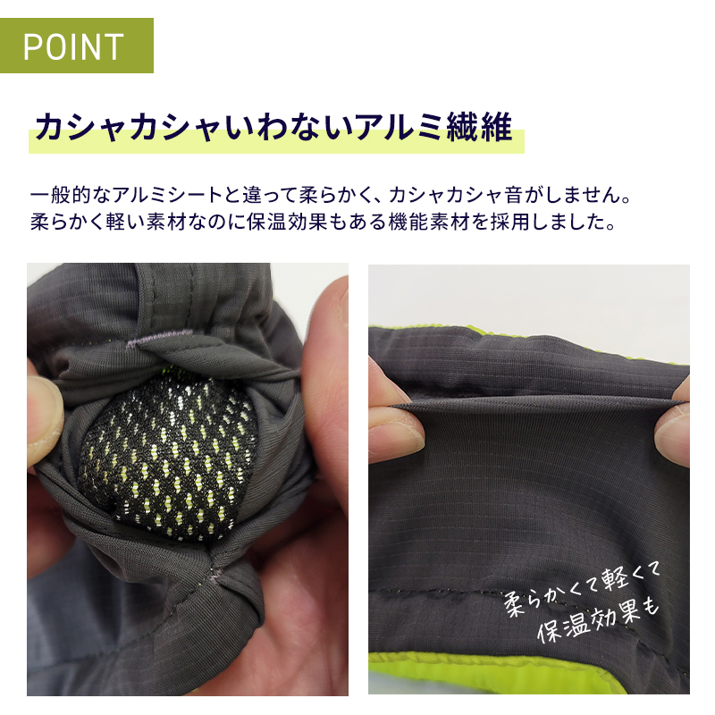 一般的なアルミシートと違って柔らかく、カシャカシャ音がしません。