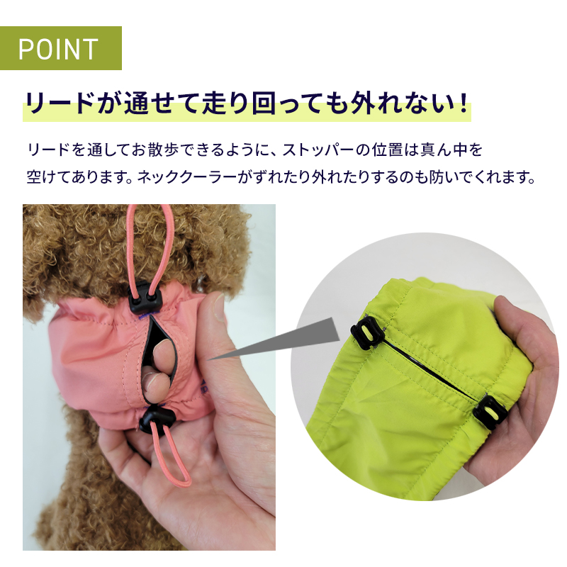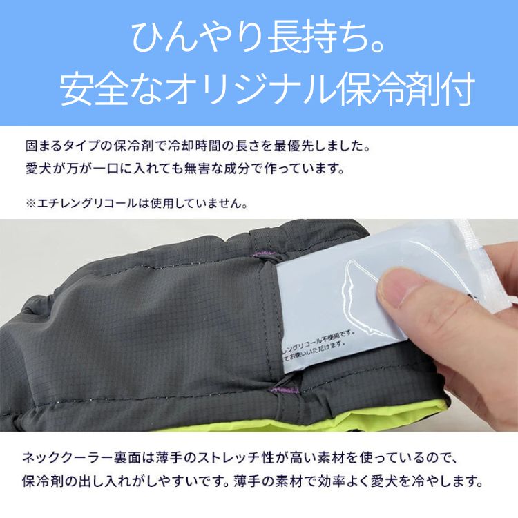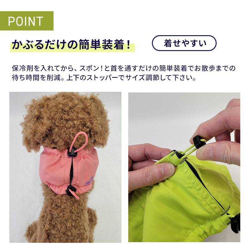 保冷剤を入れてから、スポン!と首を通すだけの簡単装着でお散歩までの待ち時間を削減。