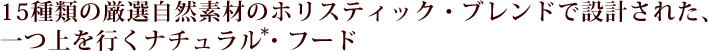 シュプレモ®は、栄養豊富な15種類の厳選された自然素材を最適にブレンドすることで、抜群のおいしさを引き出し、栄養素としての働きを高め合い、愛犬の健康をサポートします。